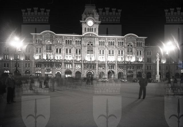 Quattro notturni di piazza Unita' d'Italia, con il palazzo del Municipio illuminato, la sera della vigilia della firma a Londra del Memorandum d'intesa.