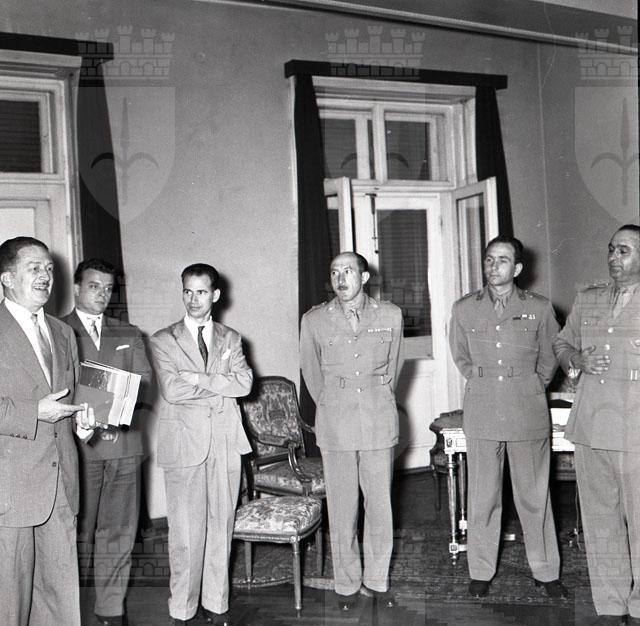 Serata di gala in onore di duecento allievi ufficiali della Scuola di fanteria e di cavalleria di Torino in visita a Trieste. Sono accompaganti dai colonnelli Roncin e Battaglia, comandanti delle Scuole. Sono presenti i generali Camilleri e Gigli e il colonnello Brunetti.
