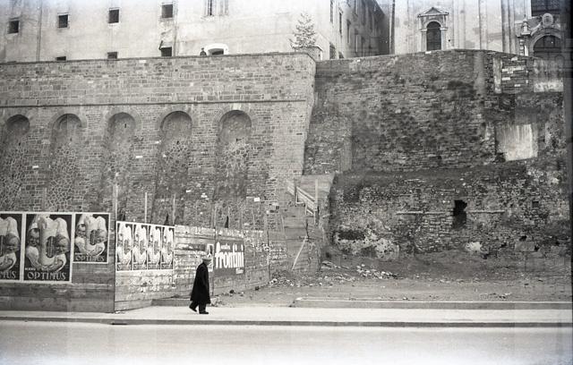 Immagini della base della chiesa di Santa Maria Maggiore e del convento dei francescani, con gli sventramenti della citta' vecchia