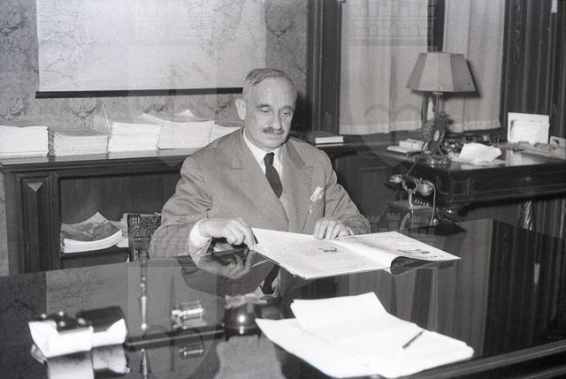 L'ingegner De Antonellis, direttore dell'Ispettorato della motoraizzazione di Trieste, è ripreso mentre sfoglia la rivista Tuttoscooter.