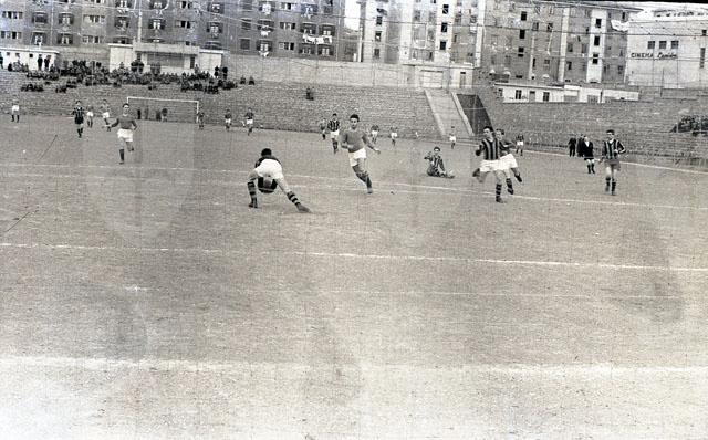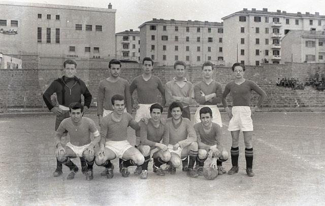 Sullo sfondo del ritratto della squadra dei calciatori si intravede l'edificio recante l'insegna del Cinema Lumiére di via Flavia