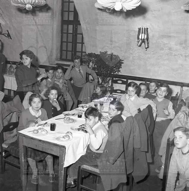 I bambini del rione di San Giusto sono ospitati alla Bottega del Vino dalla sezione di San Vito della Democrazia Cristiana.