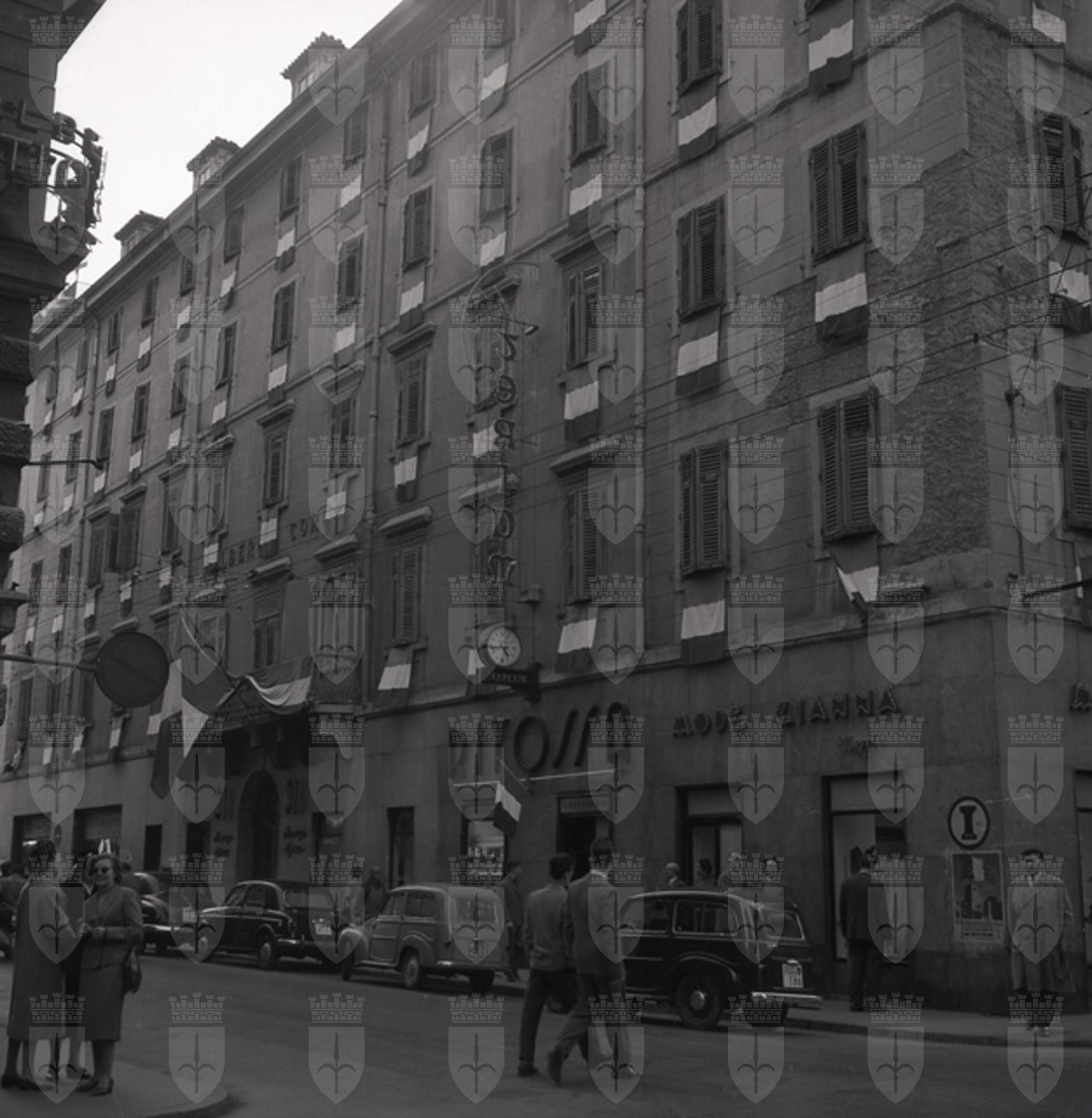 Albergo Corso imbandierato per festeggiare partenza inglesi