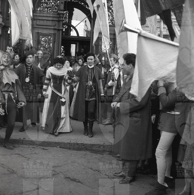 Grande sfilata di Carnevale in costumi medievali con suonatori e sbandieratori e successiva visita in Comune al sindaco Bartoli. Nella Tavagnacco, vestita da madamigella della Signoria di Gorizia, porta un invito a un convegno previsto per la domenica successiva a Gorizia. (Notizie tratte da Il Piccolo, 14.02.1955).