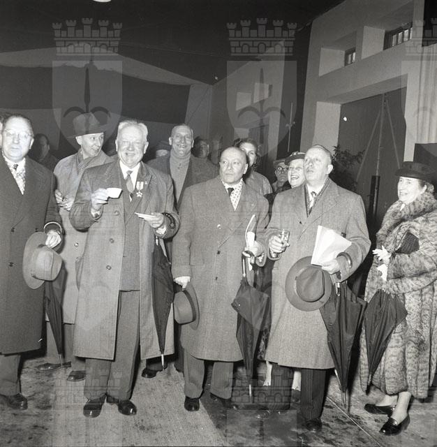 L'onorevole Achille Marazza e il sindaco Gianni Bartoli partecipano alla cerimonia di premiazione dei pensionati della Fabbrica Dreher