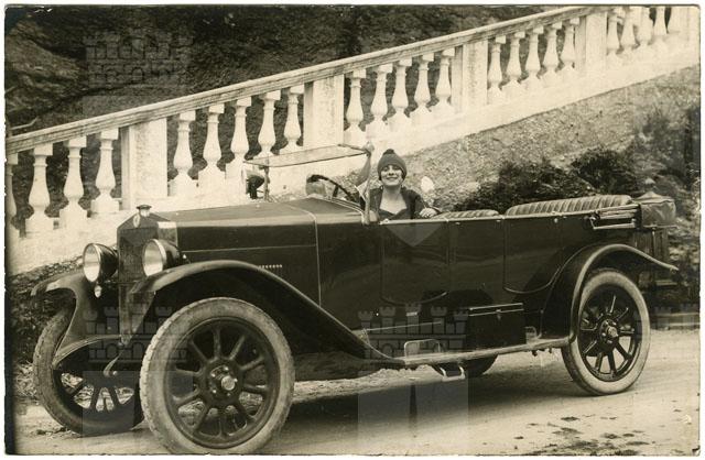 Maria Milcovich Oliani alla guida di un'automobile