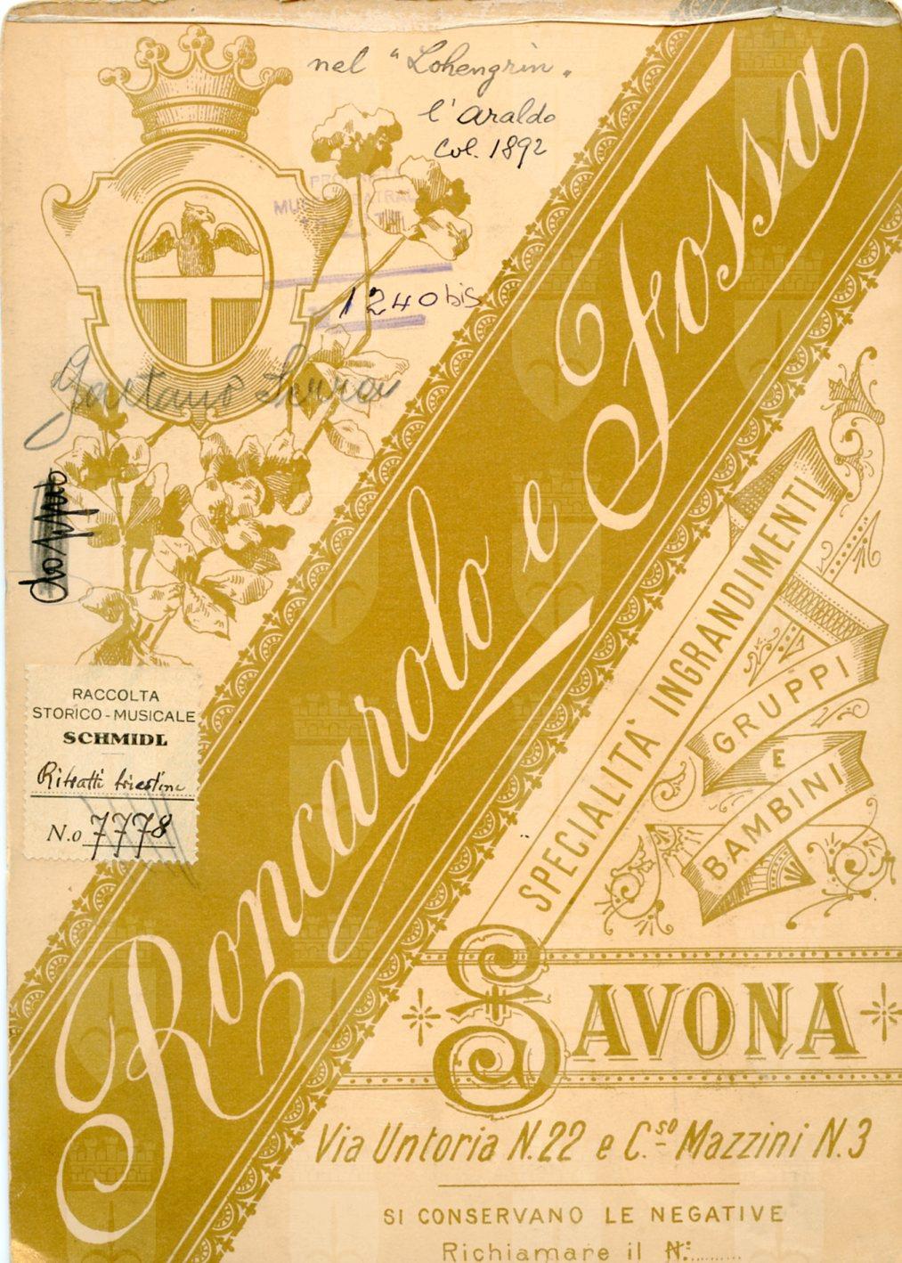 In costume nel ruolo di Araldo nel "Lohengrin". Fratello del baritono Demetrio e Anastasia-Serra Schmidl (moglie di Carlo Schmidl). A Trieste ha interpretato il Conte Robinson nel "Matrimonio segreto" alla Società Filarmonica Drammatica il 22.02.1895