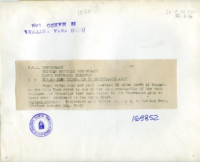 Guerra mondiale 1939-1945 - Partecipazione dei Soldati inglesi - Birmania