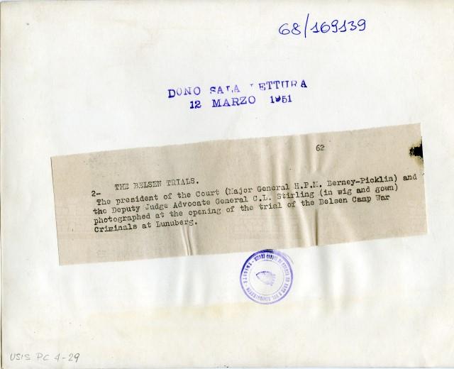 II presidente del tribunale militare H.P.M. Berney-Ficklin con il giudice e avvocato generale C.L. Stirling