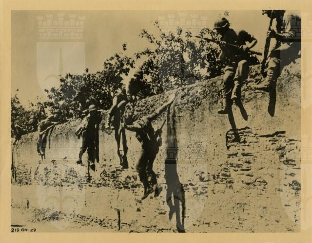 Soldati americani scalano un muro sotto il fuoco nemico