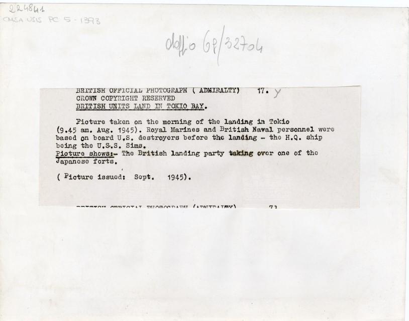 Le truppe britanniche occupano un forte giapponese nella baia di Tokyo.