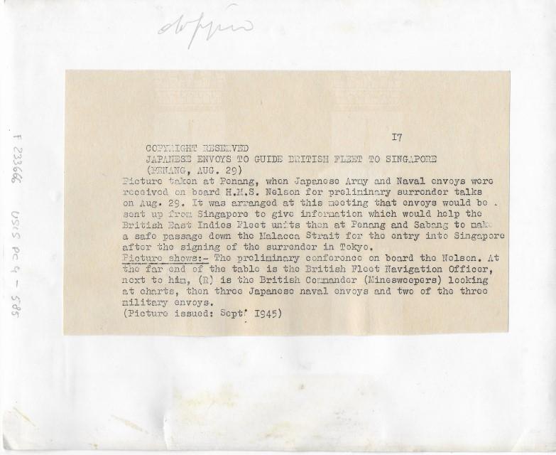 Conferenza preliminare con i delegati giapponesi per il passaggio di Malacca e Singapore agli alleati