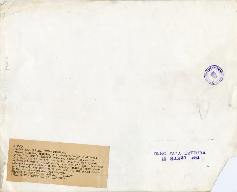 In una delle grandi grotte naturali della provincia cinese di Kwangsi, il generalissimo Chiang Kai-shek fonda un centro di addestramento della fanteria durante la guerra, per evitare che le sue reclute vengano uccise dai giapponesi. Nella foto Chiang si rivolge alle reclute.