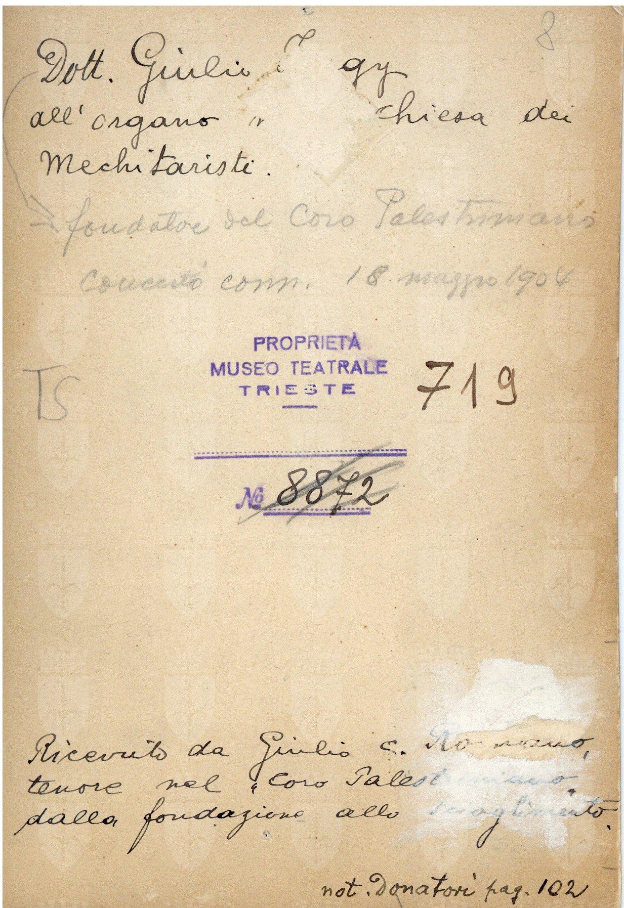 Alpinista e appassionato organista, donò, nel novembre 1894, l'organo (realizzato a Vienna dai fratelli Rieger) alla chiesa dei Mechitaristi che gli consentirono di esercitarsi nella sede di via Giustinelli con l'accordo di accompagnare le funzioni domenicali