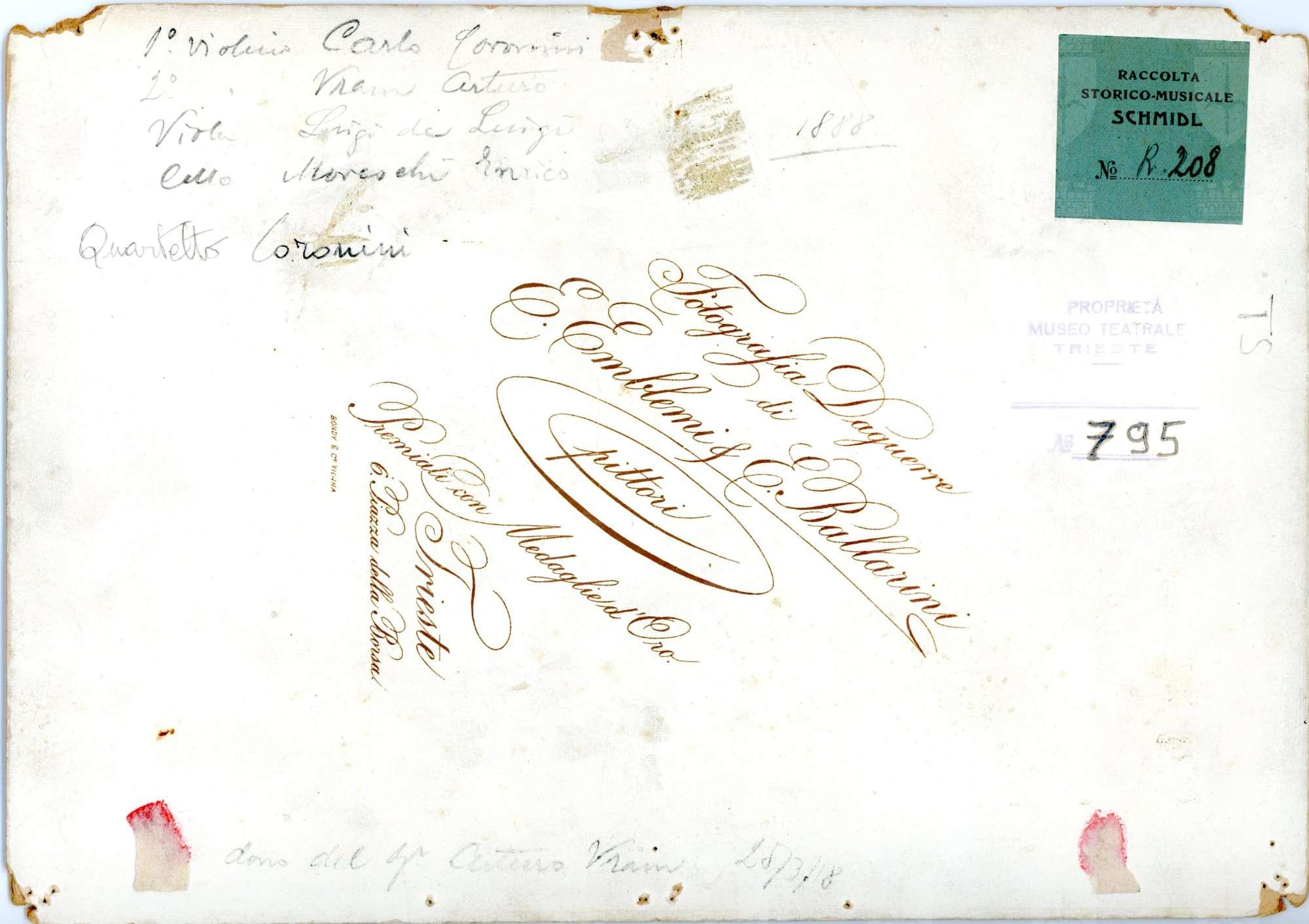 Coronini Carlo in piedi (violino), De Luigi Luigi (viola), Moreschi Enrico (violoncello) e Vram Arturo (violino)