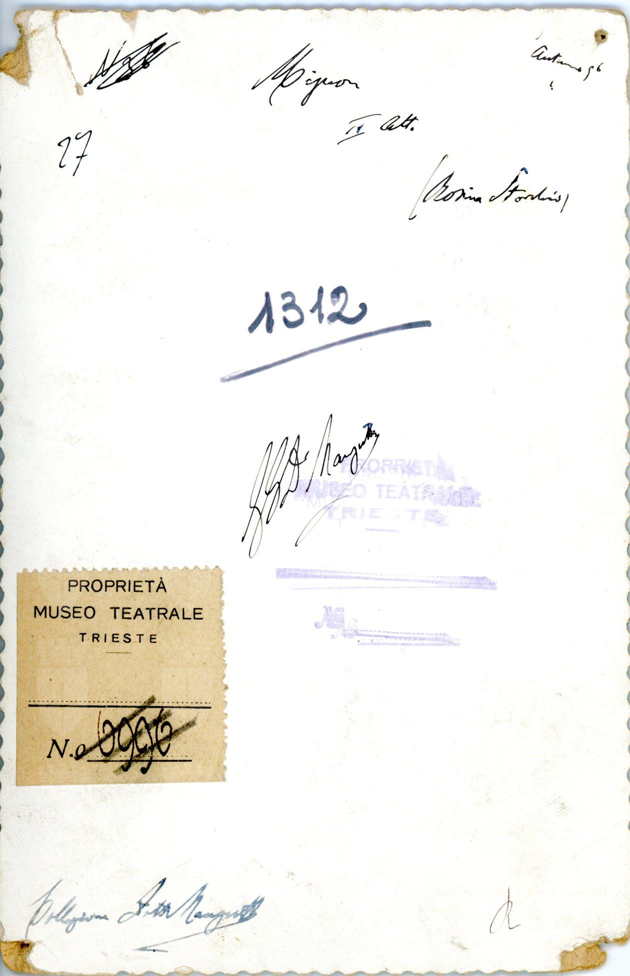 In costume di scena, nel ruolo di Mignon nell'opera omonima. A Trieste ha cantato al teatro Verdi nel 1899 in"Andrea Chenier", "Boheme", "Saffo"e "La resurrezione di Lazzaro"; nel 1914 in"Don Pasquale"e "Traviata"; nel 1920 in "Lodoletta"; al Politeama Rossetti nel 1900 in "Mignon"; al teatro Fenice nel 1894 in "I pagliacci" e nel 1896 in "Mignon" e "La pupilla"