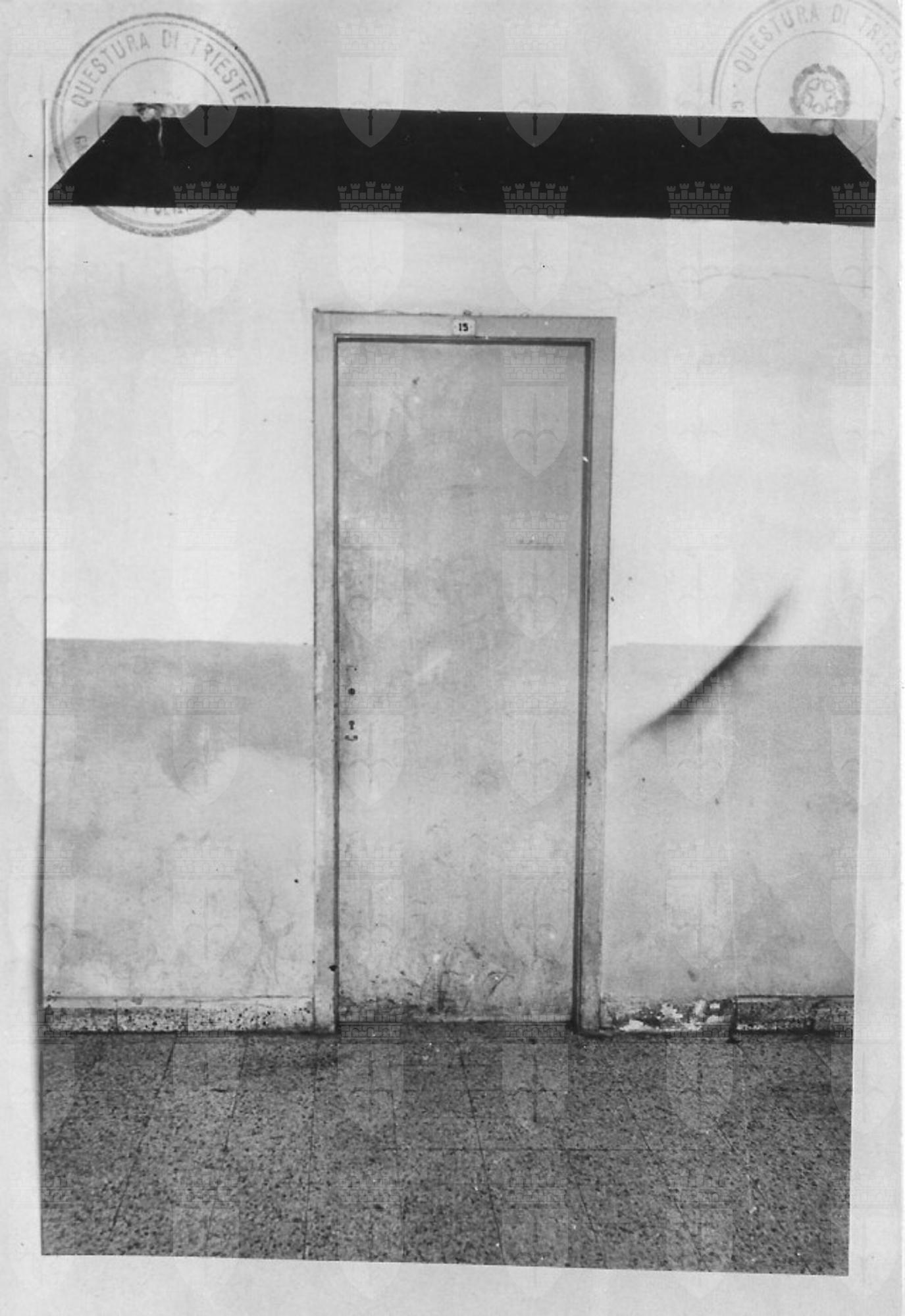 Riproduzione di una porta senza maniglia all'interno della Risiera di San Sabba