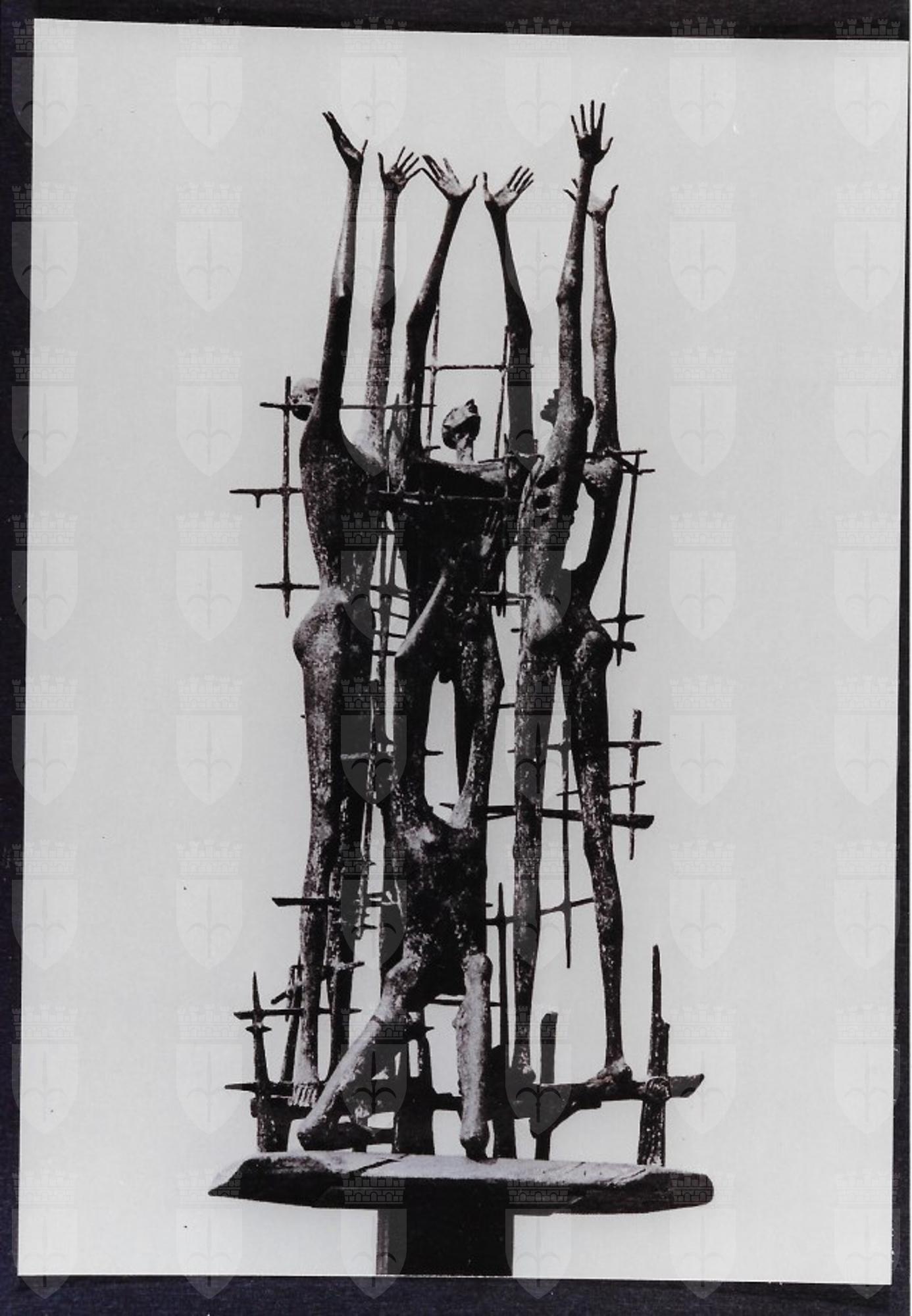 La scultura in bronzo (altezza 185 x 80 x 55 cm) con firma e monogramma dell'autore in basso a destra, è stata collocata il 22 giugno 1975 nella Sala delle Commemorazioni. L'ambiente, dopo essere stato un garage all'interno della Risiera di San Sabba, era stato risistemato a Cappella dall'architetto Romano Boico. Notizie tratte dalla scheda dell'opera del volume Le sfide della memoria. Alfonso Mottola fotografa, su commissione del Comune di Trieste, la realizzazione di alcune cartoline dedicate al monumento ideato da Romano Boico. Tratto dal catalogo L'archivio di Alfonso Mottola nella Fototeca dei Civici Musei di Storia ed Arte. Non solo fotografie