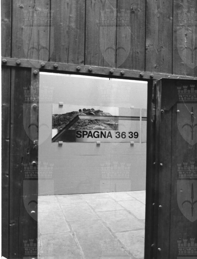 Serie di positivi della presentazione e allestimento "Spagna 1936 -39". La mostra presentata alla biennale di Venezia è stata poi trasferita alla Risiera di San Sabba, fonte: IL PICCOLO 1977/06/14 allegato al cartiglio dattiloscritto con titoli dei positivi.