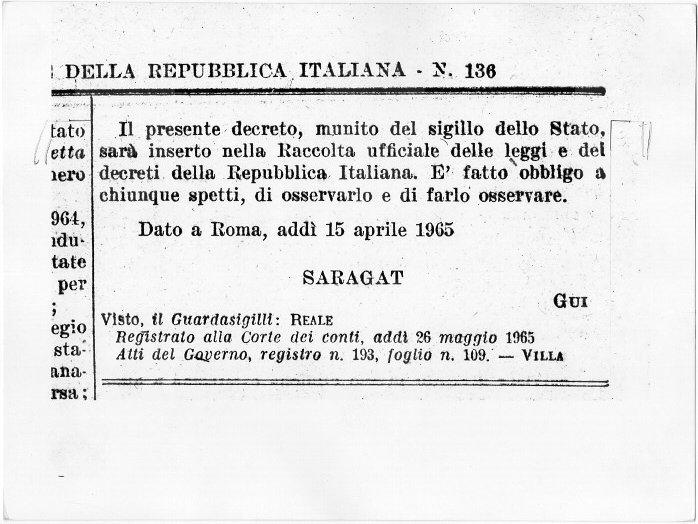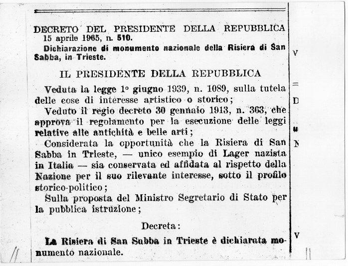 Il decreto che riconosce la Risiera di San Sabba Monumento Nazionale