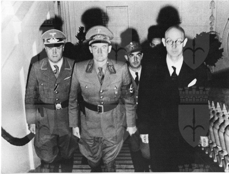 Nella foto si distinguono Friedrich Rainer, il prefetto della Provincia di Trieste Bruno Coceani e il Deutscher Berater Hinteregger, funzionario tedescco deputato al controllo di tutti gli atti compiuti dal prefetto.