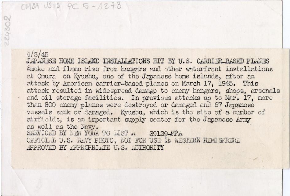 Incendio delle basi aeree giapponesi a seguito dei bombardamenti americani sulla città di Omura.