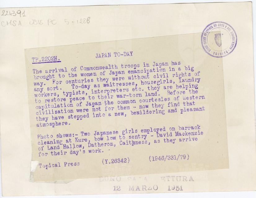 Colecchia Claudia, Peace is here! Fotografie di propaganda degli Americani in Estremo Oriente nel fondo Usis della Fototeca dei Civici Musei di Storia ed Arte, Trieste, 2017, p. 64 Consulta OPAC