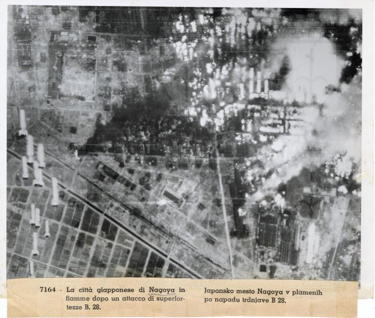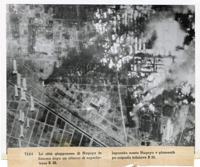 Veduta aerea del bombardamento americano sulla città di Nagoya.