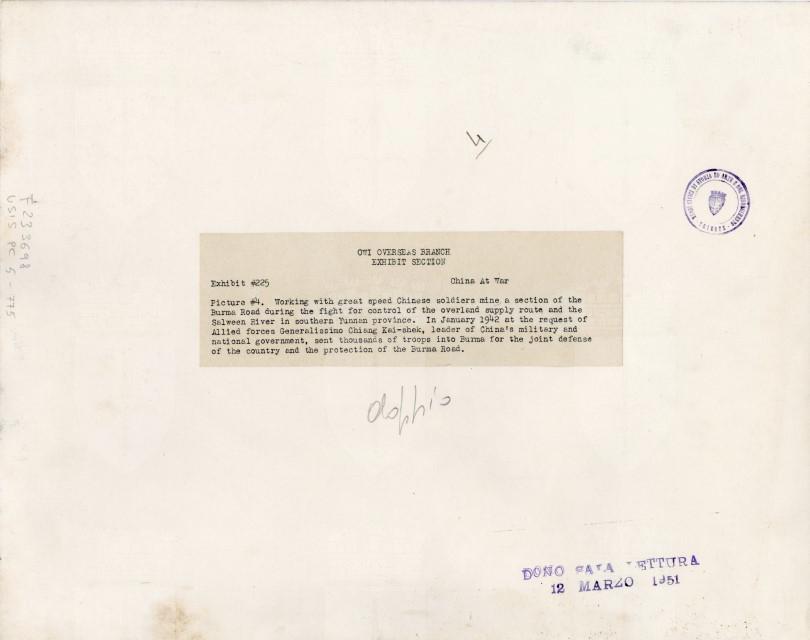 Working with great speed Chinese soldiers mine a section of the Burma Road