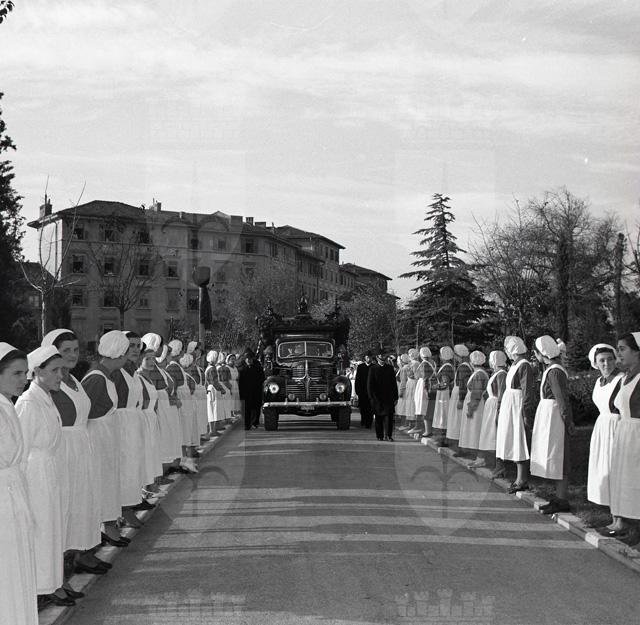 La salma del barone procede, accompagnata dalla folla, dall'ospedale Burlo-Garofolo per le vie della citta, fino alla chiesa greco ortodossa di San Nicolo per la celebrazione delle esequie.