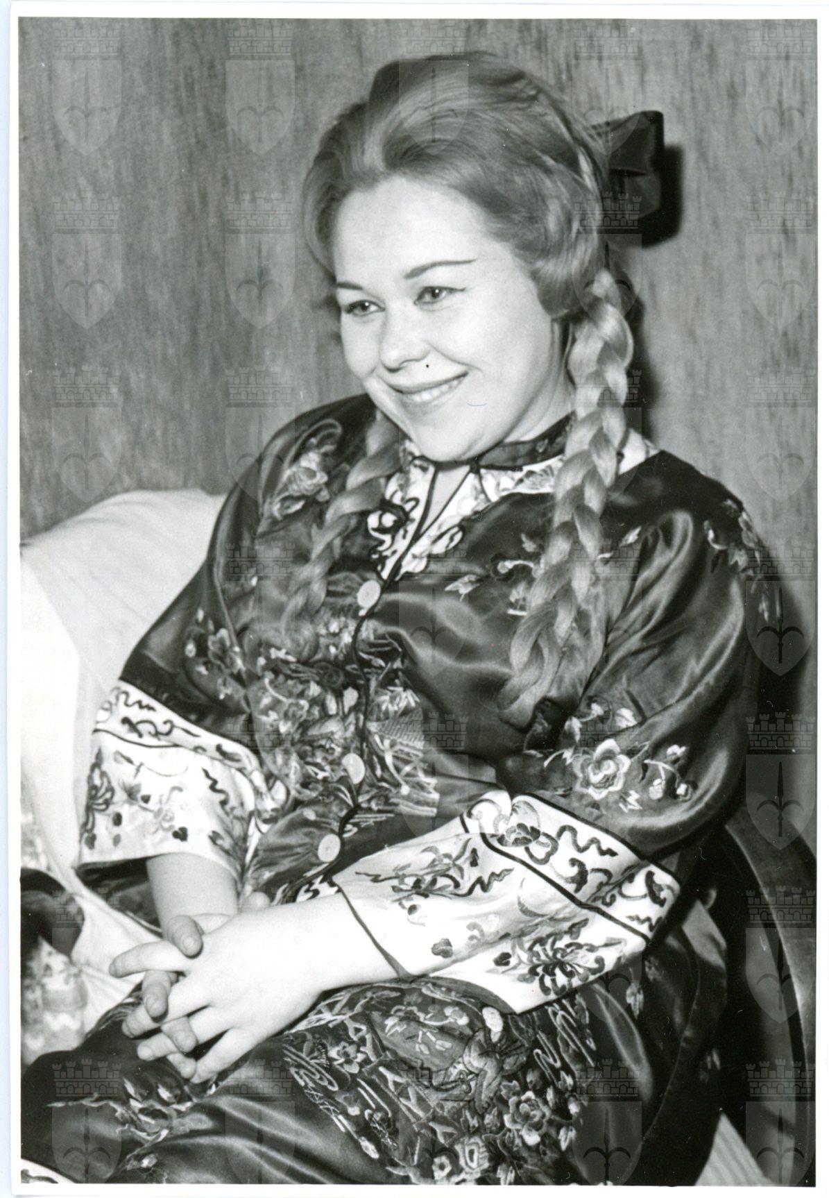 Il celebre soprano in costume nel ruolo di Micaëla nella Carmen rappresentata al Teatro Verdi di Trieste nel gennaio del 1960