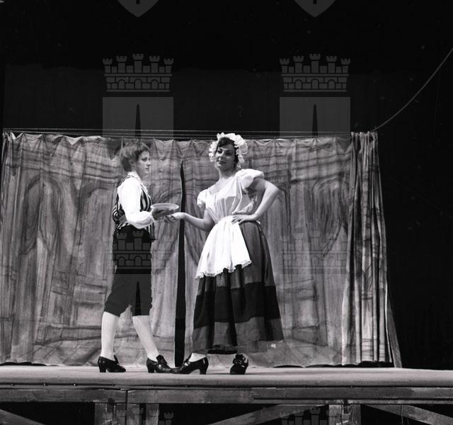 Gli allievi della scuola di recitazione del Teatro Nuovo offrono al pubblico, dopo il saggio di fine d'anno, tre repliche straordinarie dello spettacolo tratto dalla commedia di Carlo Goldoni "Arlecchino servitore di due padroni", con l'attore Giorgio Valletta, per la regia di Fulvio Tolusso. Il Piccolo Sera 08.07.1960