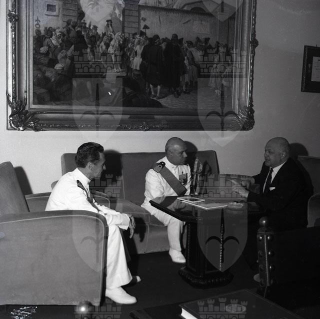 Il comandante dell'incrociatore Montecuccoli, gioiello della Marina Militare Italiana, capitano di vascello Mario Baroglio, si è recato in visita di cortesia alle maggiori autorità cittadine. Ha avuto modo di incontrare il commissario generale del Governo Palamara, il vescovo Santin, il Sindaco Franzil ed il comandante del presidio militare Vismara, tutti a loro volta ospitati sull'incrociatore. Nel pomeriggio è stato offerto dal Comune un ricevimento al Castello di San Giusto in onore di ufficiali ed allievi del Montecuccoli. Notizie tratte da Piccolo sera 20.07.1960