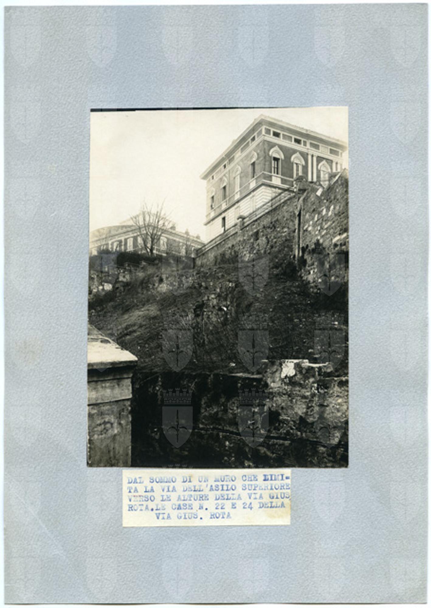 Dal sommo di un muro che limita la via dell'Asilo superiore verso le alture della via Giuseppe Rota. Le case N. 22 e 24 della via Giuseppe Rota