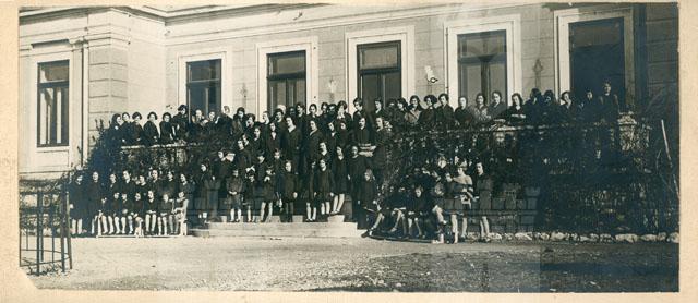 La villa venne costruita su progetto di Ruggero Berlam nel 1889. A commissionarla fu Giorgio Haggiconsta, un ricco possidente di origine greco-russa marito di Elena di Demetrio, proprietaria del fondo. Alla morte dei proprietari, l'edificio fu acquistato da un cittadino italiano che lo cedette al Comune di Trieste. A partire dal settembre 1924 fu sede dell'Istituto femminile di coltura e proponeva corsi liberi rivolti a un pubblico femminile di "lingua e letteratura italiana, francese, tedesca, inglese, storia della cultura e dell'arte, lavori femminili ed artistici, disegno, pittura, pittura, modellatura, incisione, corso pratico di batik, musica, ginnastica svedese ed armonico ritmica, danza classica". La foto ritrae, tra le altre, Fulvia, madre del donatore e la sorella Bruna Stoelker. Negli anni Trenta fu donata all'Opera Nazionale Balilla, affinché la destinasse a "Casa della Giovane Italiana" e, di conseguenza, vennero eseguiti dei lavori di adattamento, in particolare ai fabbricati di servizio. Tra il 1962 e il 1968 la villa venne utilizzata dall'Opera di assistenza ai profughi giuliani e dalmati, mentre nel 1972 la proprietà della struttura passò alla Regione che, dopo i restauri seguiti dall'ingegner Pietro Cvitanich, la destinò ad accogliere un centro di educazione motoria. Il complesso della villa comprendeva in origine, oltre all'edificio padronale, la scuderia, una rimessa, la lavanderia, le serre e un giardino all'inglese, il tutto progettato da Berlam. L'edificio principale, in stile eclettico con rimandi all'architettura italiana del Cinquecento, presenta una pianta ed una composizione dei volumi mosse ed asimmetriche ma equilibrate nell'insieme. Sul lato principale si distinguono tre corpi in altezza decrescente con una torretta che domina il complesso.