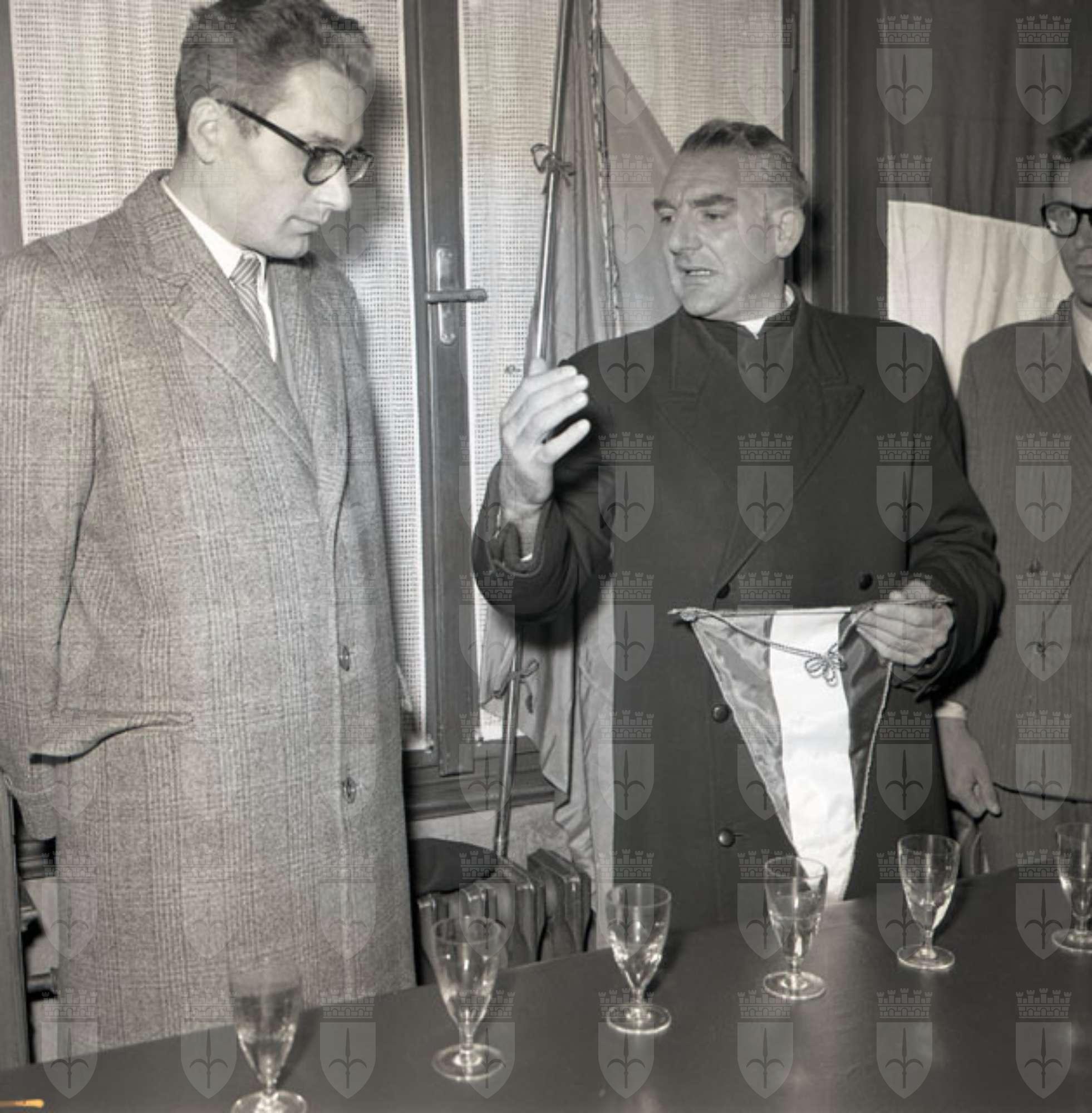 Gli allievi del Collegio di Pesaro per le vittime della guerra partecipano alla storica giornata del 26 ottobre e vengono ricevuti da Fracassi e dal sindaco Bertoli presso Villa Revoltella. Testo tratto da Il Piccolo: giornale di Trieste, 28.10.1954