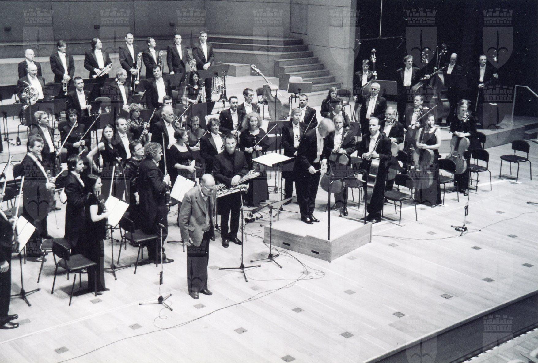 Pavle Merkù con la Slovenska Filharmonija al termine di un concerto
