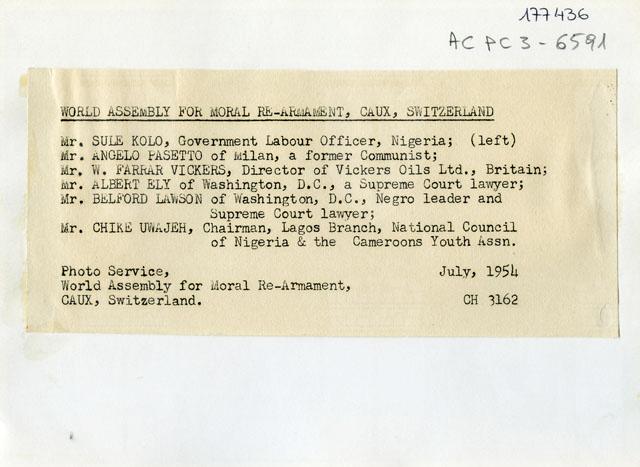 13 studenti universitari di Trieste con il tribuno si recano a Caux sur Montreux per partecipare alla conferenza del movimento del Riarmo Morale (o Movimento di Caux-sur-Montreux). Il sindaco partecipa agli incontri. Dalla sua installazione a Caux nel 1946, il movimento del Riarmo morale si impegna per la ricostruzione dell’Europa, riunendo gli ex belligeranti e organizzando conferenze internazionali.