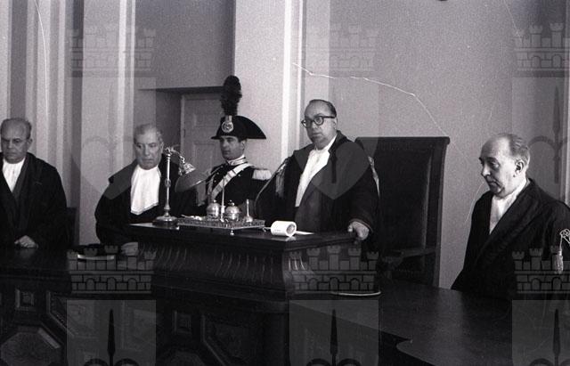 Viene allestita la camera ardente nell'aula magna del Tribunale per il primo presidente della Corte d'Appello di Trieste mancato dopo breve malattia. Nato a Cittaducale nel 1888, Alfonso Consalvo, entra nel 1912 in Magistratura dapprima come uditore nella Corte d'appello di Roma, poi vice pretore a Chieti e in seguito a Lanciano. Nominato Pretore in diverse sedi, nel 1923 ricopre l'ufficio di sostituto procuratore presso il tribunale di Lanciano e nel 1928 a Roma. Nel 1934 diventa consigliere di Corte d'Appello e poi sostituto procuratore generale alla corte di Appello della capitale oltre alla rappresentanza del Pubblico ministero presso il Tribunale dei minori. Distaccato dall'ottobre 1934 presso il Gabinetto del Guardasigilli, diventa Guardasigilli nel 1937. Nel 1942 è nominato Consigliere della Suprema Corte di Cassazione e nel 1955 passa alla Procura generale della Repubblica presso la Corte di Appello di Trieste, diventando nel 1954 Primo Presidente della Corte di Appello. (Notizie tratte da Il PIccolo, 9 maggio 1958)