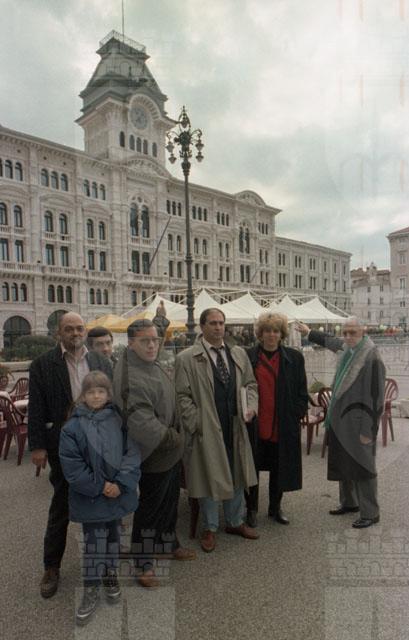 Premiazioni Lloyd Adriatico, premio biennale, 1999, Cucchiani, Claudio Magris. Saccari, Illy, Ravignani, Borruso. Museo Revoltella. Marchesich, piazza Unità.
