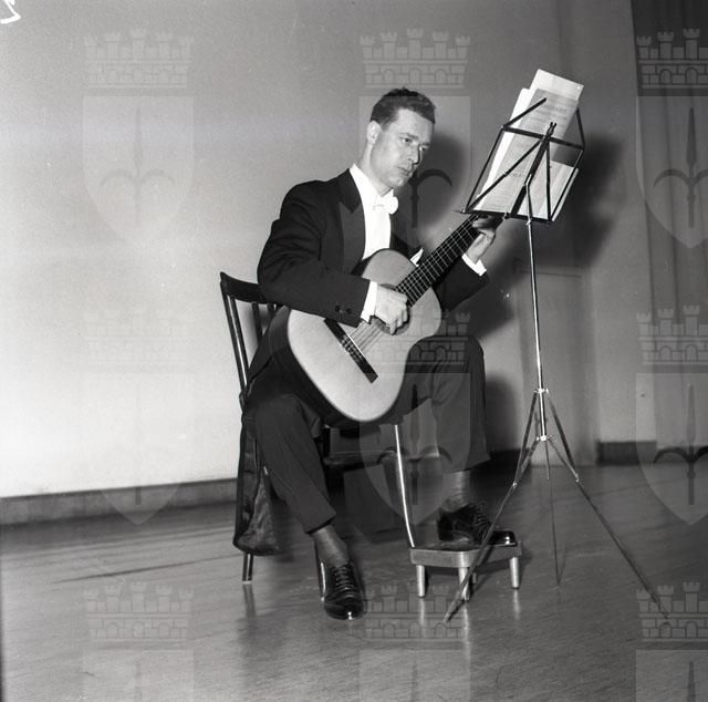Bruno Tonazzi, chitarrista concertista e musicologo (Trieste, 15 settembre 1924, Trieste, 9 novembre 1988). Perfezionatosi all'Accademia Chigiana di Siena con Andres Segovia, intraprese una brillante attività concertistica a livello internazionale che lo vide esibirsi come solista in importanti istituzioni musicali, riscuotendo sempre un ampio consenso di critica e di pubblico. Si dedicò intensamente anche alla ricerca musicologica, trascrivendo per chitarra dalle intavolature per liuto e chitarra antica. Di particolare importanza la pubblicazione nel 1975 del I° Libro de intabolatura di liuto (1567) di Giacomo Gorzanis con un interessante studio bio-bibliografico. Tonazzi diede impulso anche all'arricchimento del repertorio contemporaneo per chitarra, infatti Mario Castelnuovo-Tedesco, Giulio Viozzi e Antonio Bibalo gli dedicarono alcuni brani per chitarra. Fu molto attivo anche come revisore di musiche, in particolare dell'Ottocento. Fondamentale, per un primo sistematico approccio all'arte della trascrizione dalle antiche intavolature per strumenti a pizzico, resta il manuale "Liuto, vihuela, chitarra e strumenti similari nelle loro intavolature. Con cenni sulle loro letterature" pubblicato nel 1971. Bruno Tonazzi fu titolare di una delle prime cattedre di chitarra classica presso i Conservatori italiani; insegnò dapprima al Conservatorio "Monteverdi" di Bolzano dal 1961 al 1963 per poi trasferirsi al Conservatorio "Tartini" della sua città natale dove insegnò dal 1963 fino alla morte. Tratto da https://digilander.libero.it/brunotonazzi/testi/biografia.htm