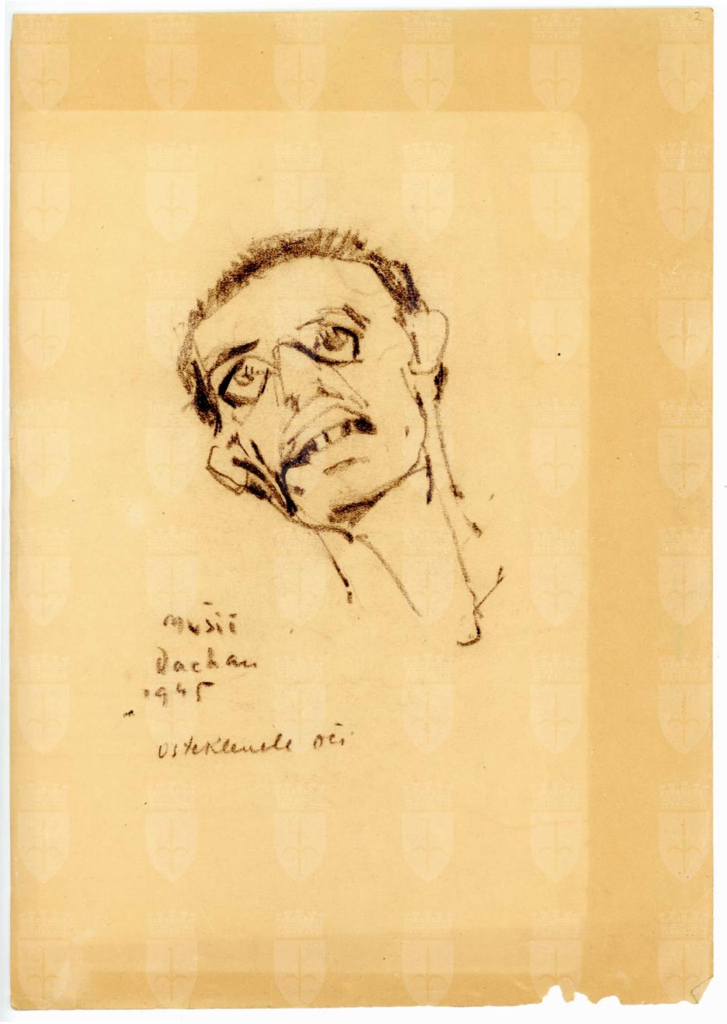 Sul recto sono presenti la firma, il luogo e la data: Mušič Dachau 1945; Sul verso è presente una nota manoscritta a matita “verglaste Augen” (Occhi vetrificati)
