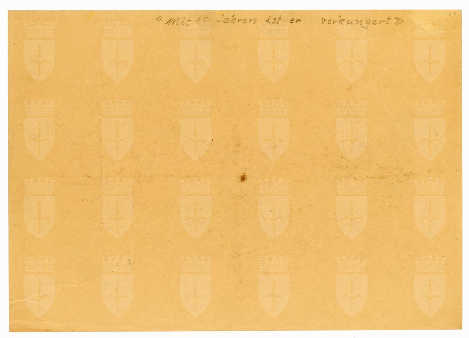 Sul recto è trascritta la firma, il luogo e la data: Mušič Dachau 1945 Sul verso vi è una nota manoscritta a matita “Mit 15 Jahren ist er verhungert” (A 15 anni è morto di fame)