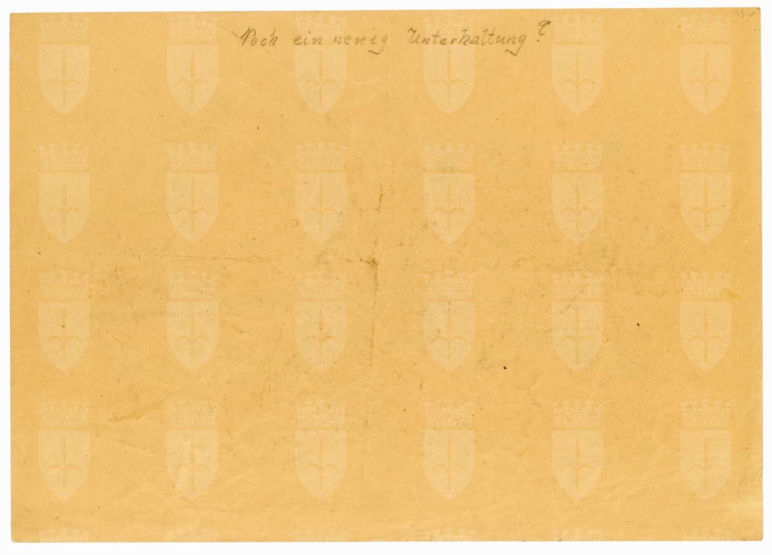 Sul recto è presente la firma, il luogo e la data: Mušič Dachau 1945 Sul verso vi è una nota manoscritta a matita “Noch ein wenig Unterhaltung?” (Ancora un po' di conversazione?)