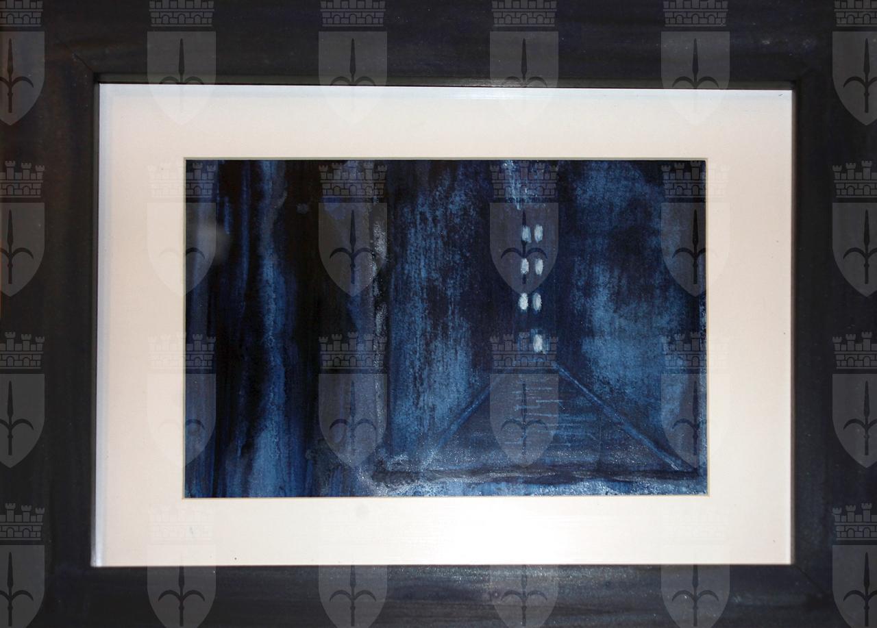 L'illustrazione rappresenta il corridoio dell'ingresso monumentale della Risiera di San Sabba, in evidenza i muri di cemento armato in particolare quello di sinistra. Il lavoro è monocromo, blu e solamente le finestre e l'apertura verso il cortile sono rese con un colore chiaro.