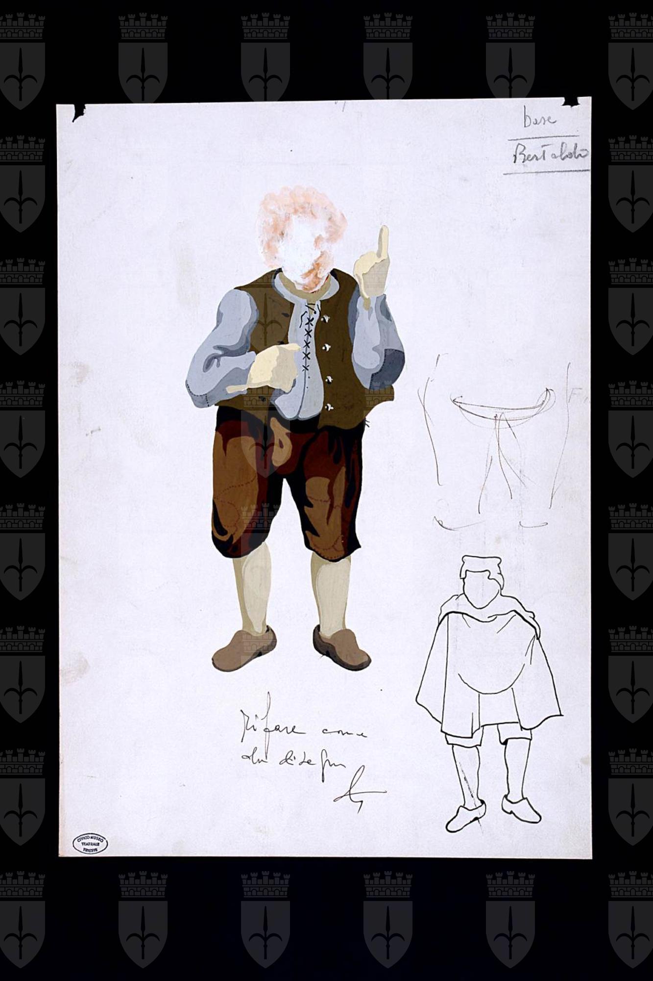 La storia di Bertoldo, testo teatrale di Fulvio Tomizza, costume per Bertoldo, personaggio interpretato da Franco Mezzera