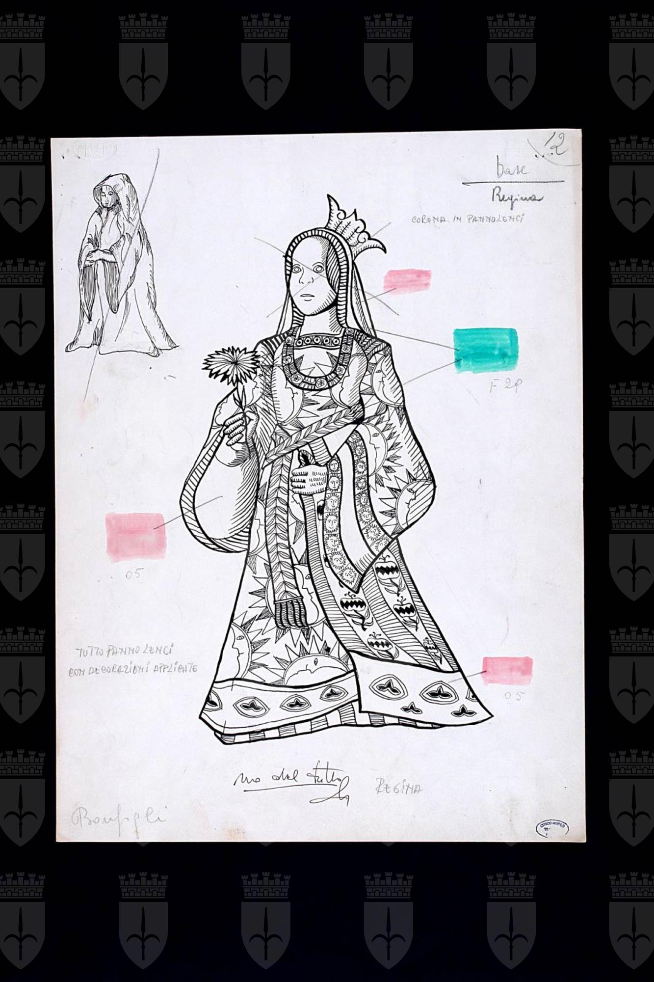 La storia di Bertoldo, testo teatrale di Fulvio Tomizza, costume per Regina, personaggio interpretato da Marina Bonfigli