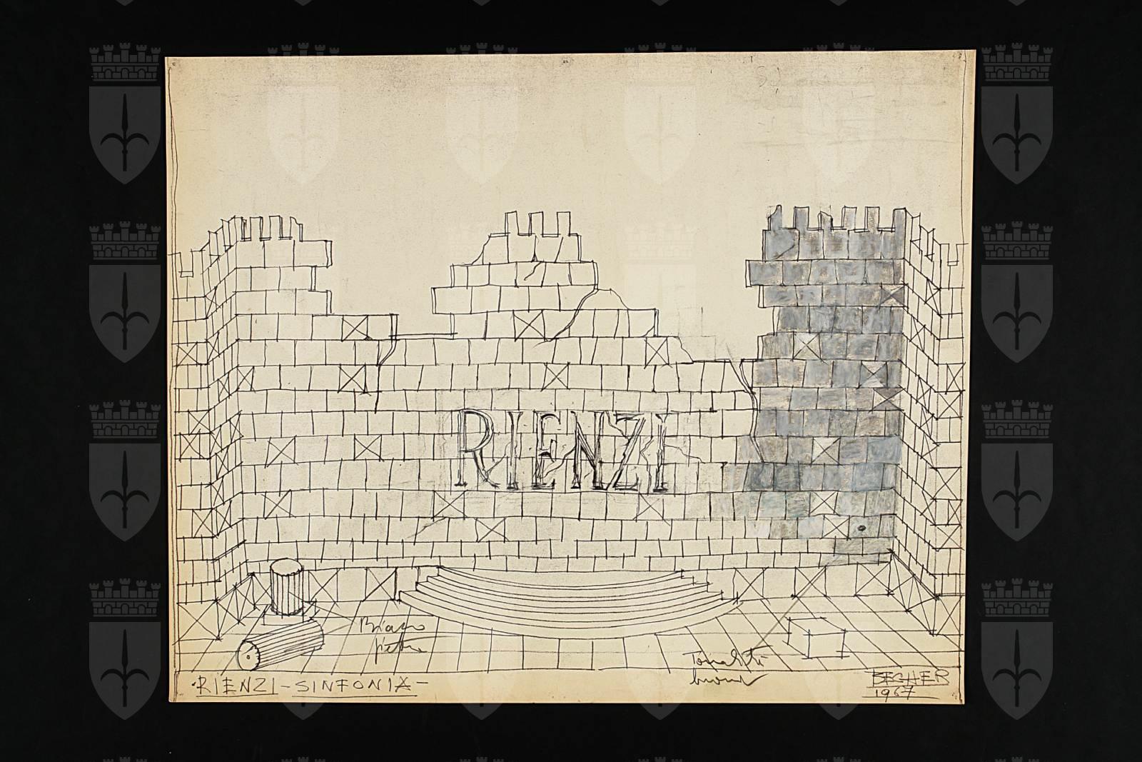 Scenografia per Rienzi di G. Becher, Trieste, Teatro Verdi, stagione lirica 1967-1968, regia scene e costumi di Gianrico Becher