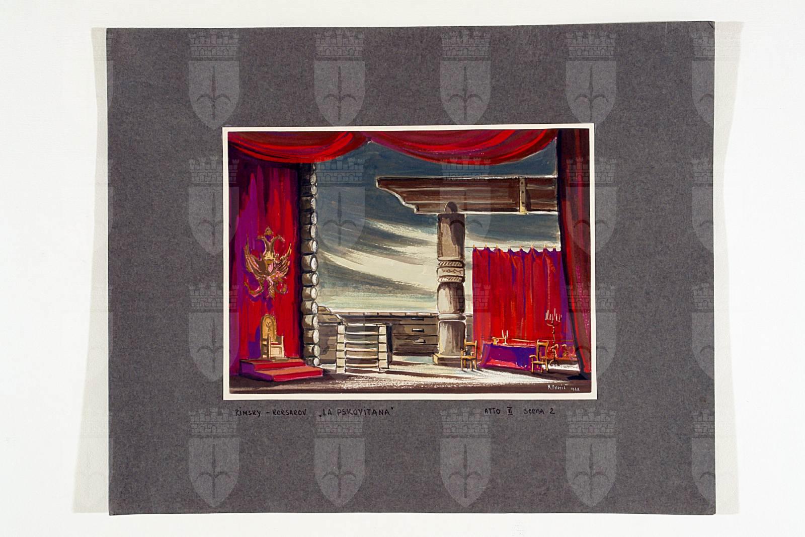 Bozzetto scenografico per Pskovitianka (Ivan il terribile), opera di Nikolaj Andreevič Rimskij-Korsakov, prima rappresentazione 13 gennaio 1968, Teatro Comunale Giuseppe Verdi Trieste, regia di Mladen Sablic
