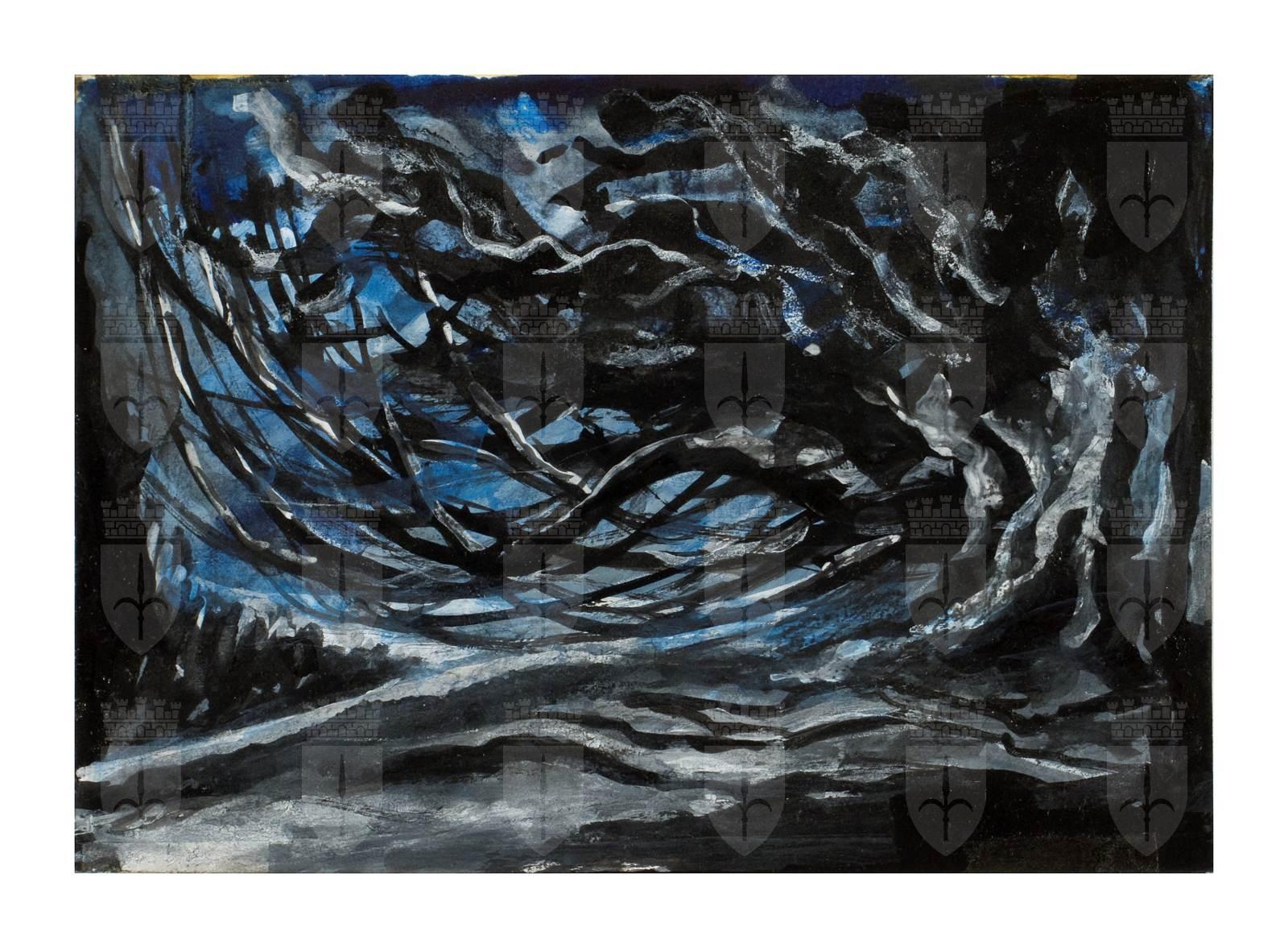 Káťa Kabanová, opera lirica di Leoš Janáček, studio per scenografia, paesaggio con albero